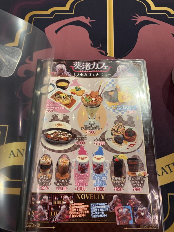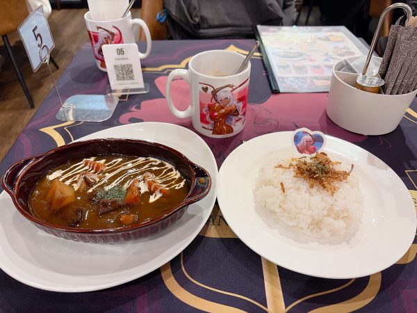 フードメニューを頼むとランチョンマット、ドリンクを頼むとコースターが付いてくるよくあるコラボカフェの形態だと思う。
