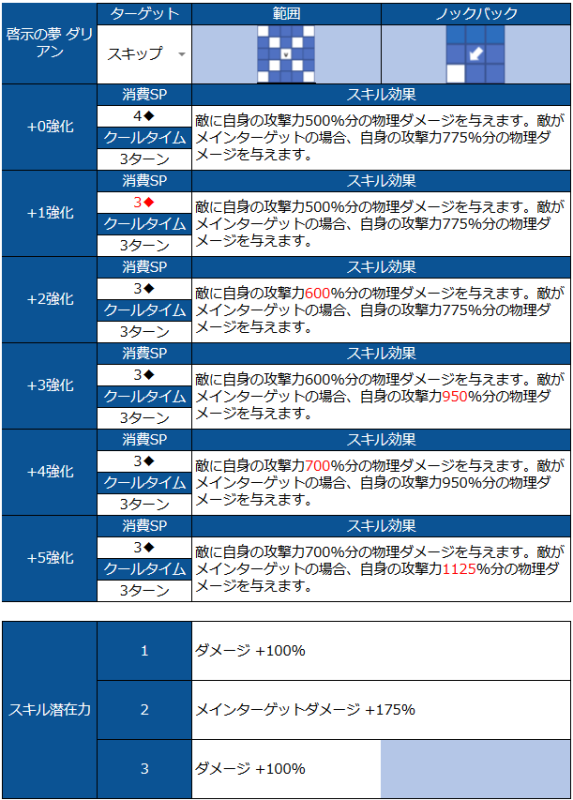 ダリアンのスキルを性能面から見てみると、まず「ノックバック」が特殊。