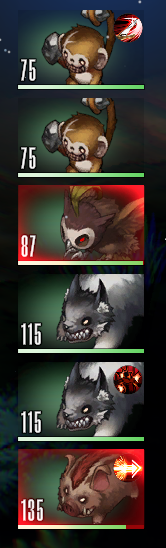 攻撃ではなく、味方へのサポートスキルの場合は対象のキャラへ緑の線が伸び、それぞれのキャラの下に追加される効果のアイコンも付与される。アイコンの数字は効果ターン数。