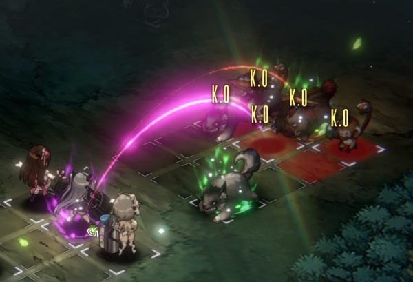 また、味方を選んでいるときも共通だが、スキルを使用するキャラクターは色付きのオーラをまとい、そのオーラーの色は属性によって変わる。