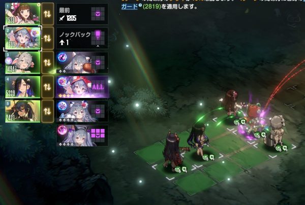 誰が対象になっているかは左のキャラアイコンでも確認でき、対象は枠が緑になる。