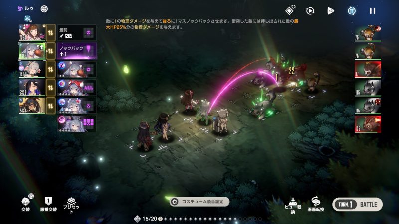 どの敵に攻撃が当たるかは同時にこちらのUIでも確認できる。